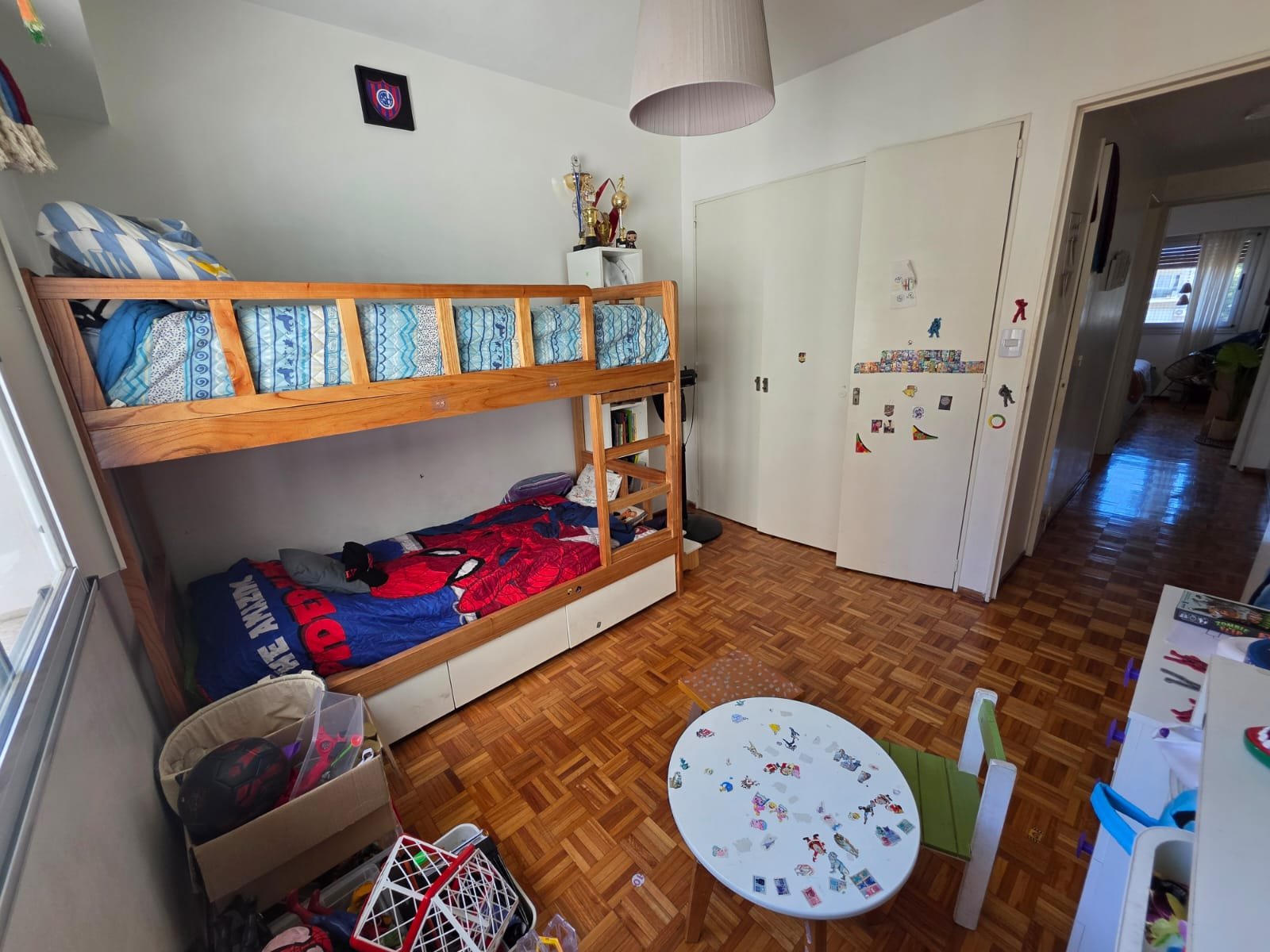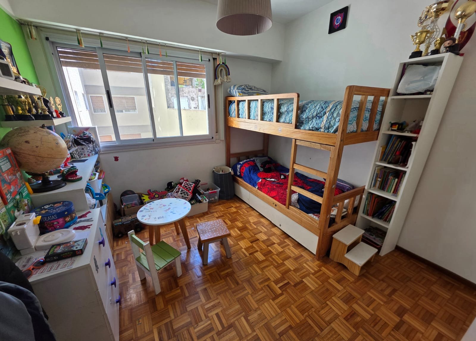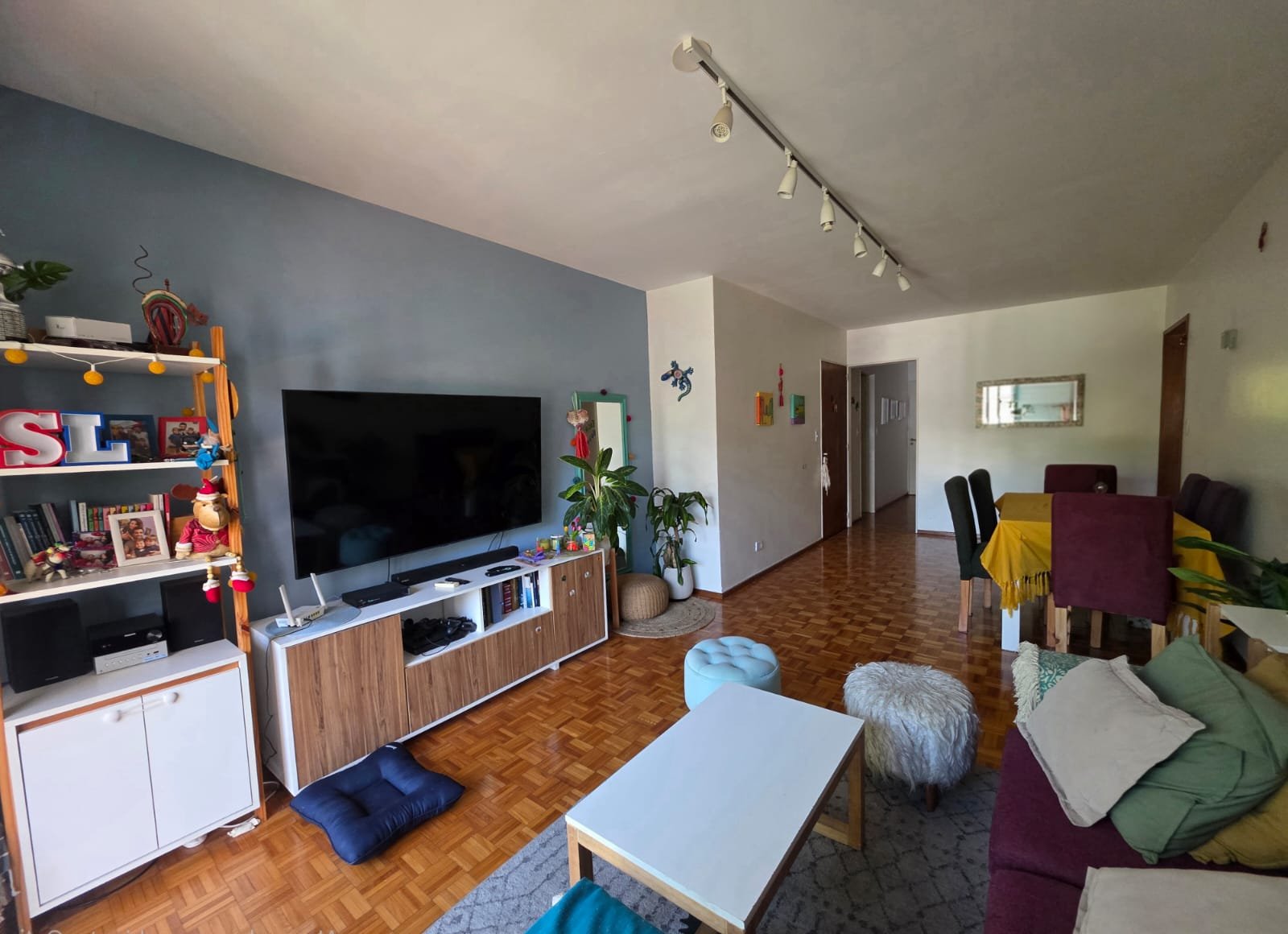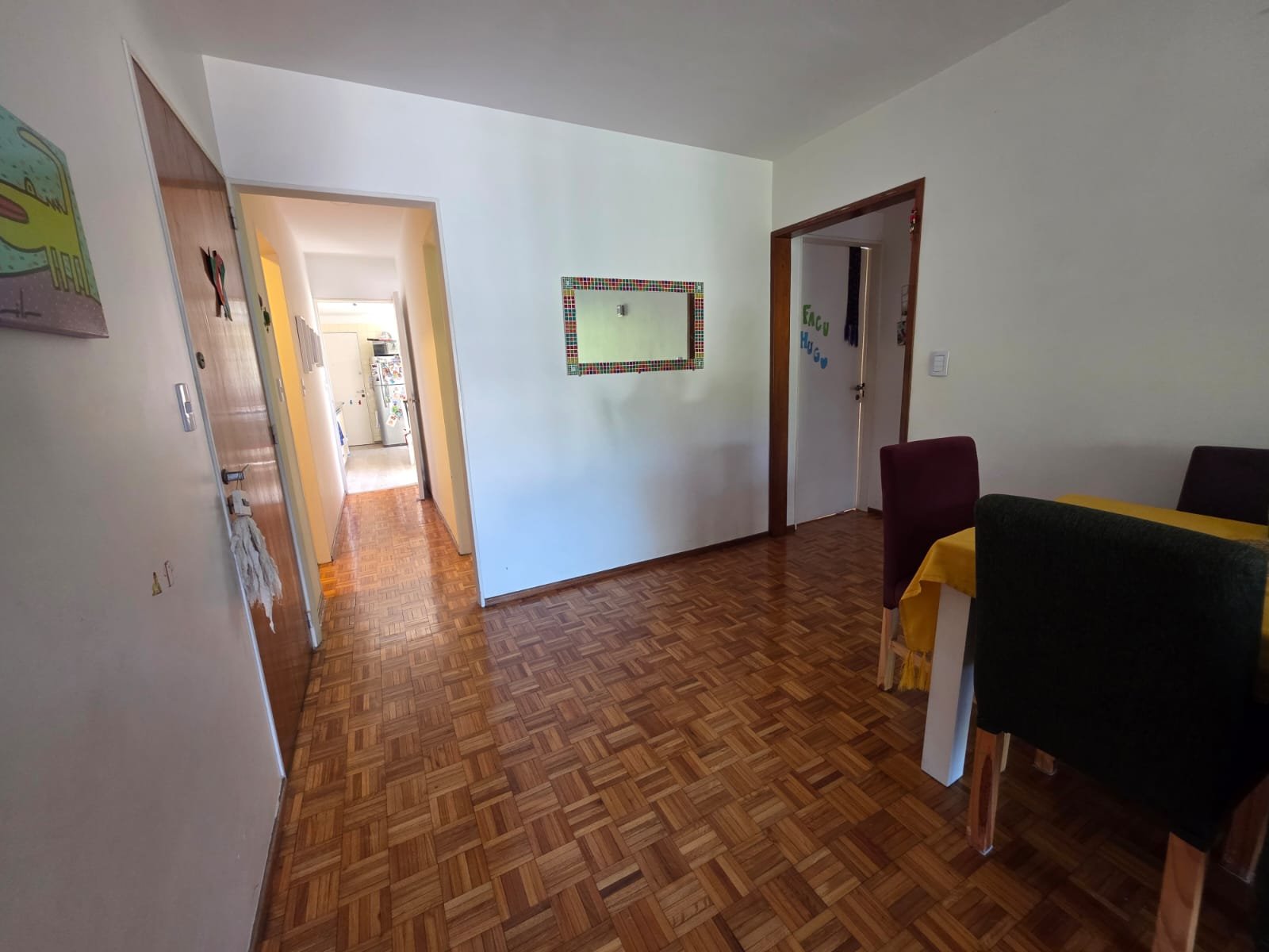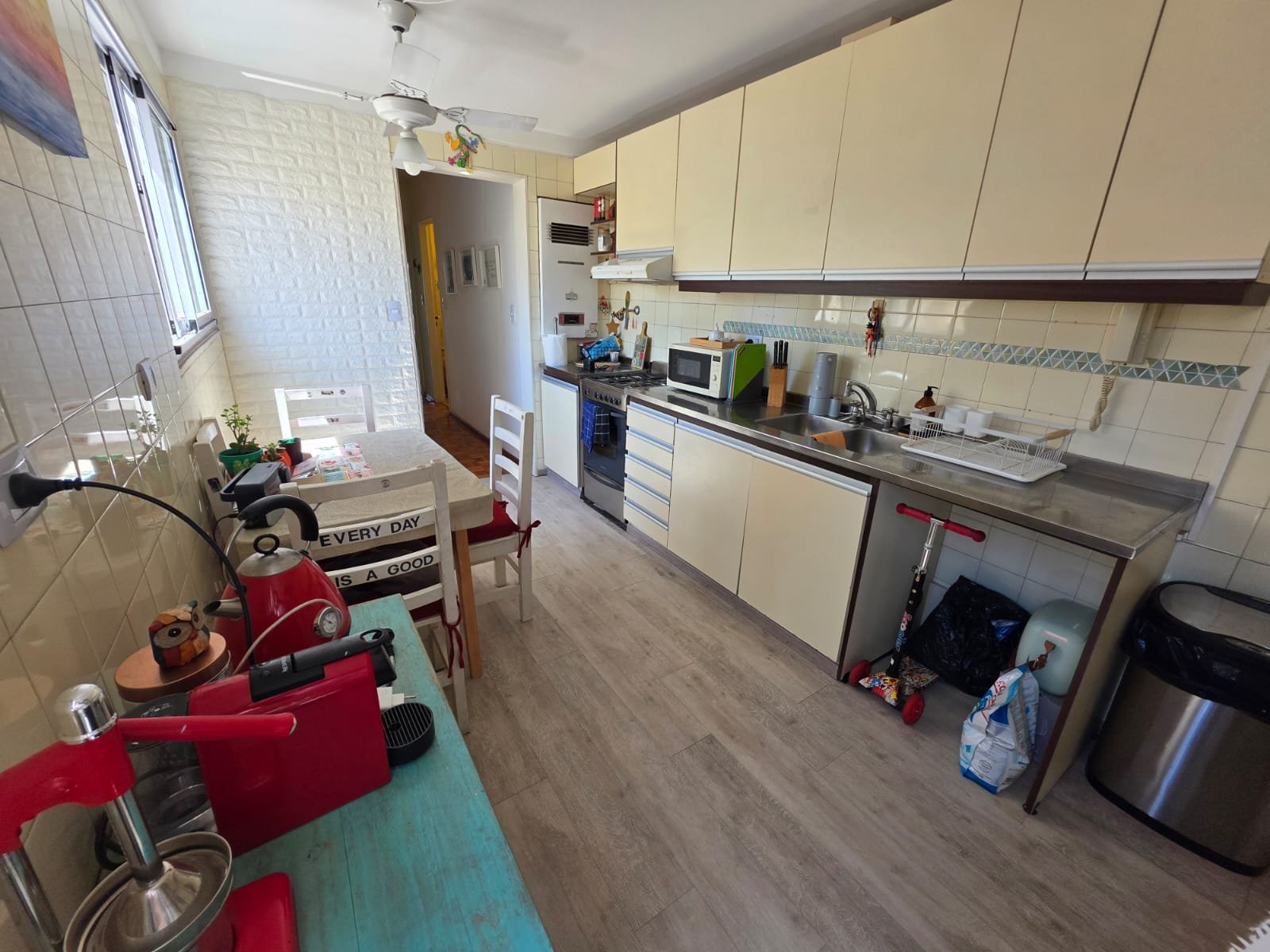 Gran living comedor con salida al balcon de 7,8×3,3 ; cocina 4,5×2,6 ; escritorio 2,9×2 ; dormitorio con ventilación al balcon 3,2×2,8 mas placard ; dormitorio al pulmon 3×2,8 mas placard ; baño completo amplio con ventilacion natural y toillet.